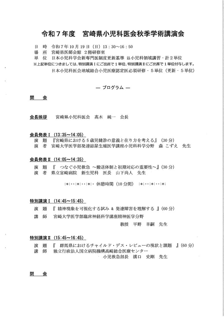 令和7年度 宮崎県小児科医会秋季学術講演会